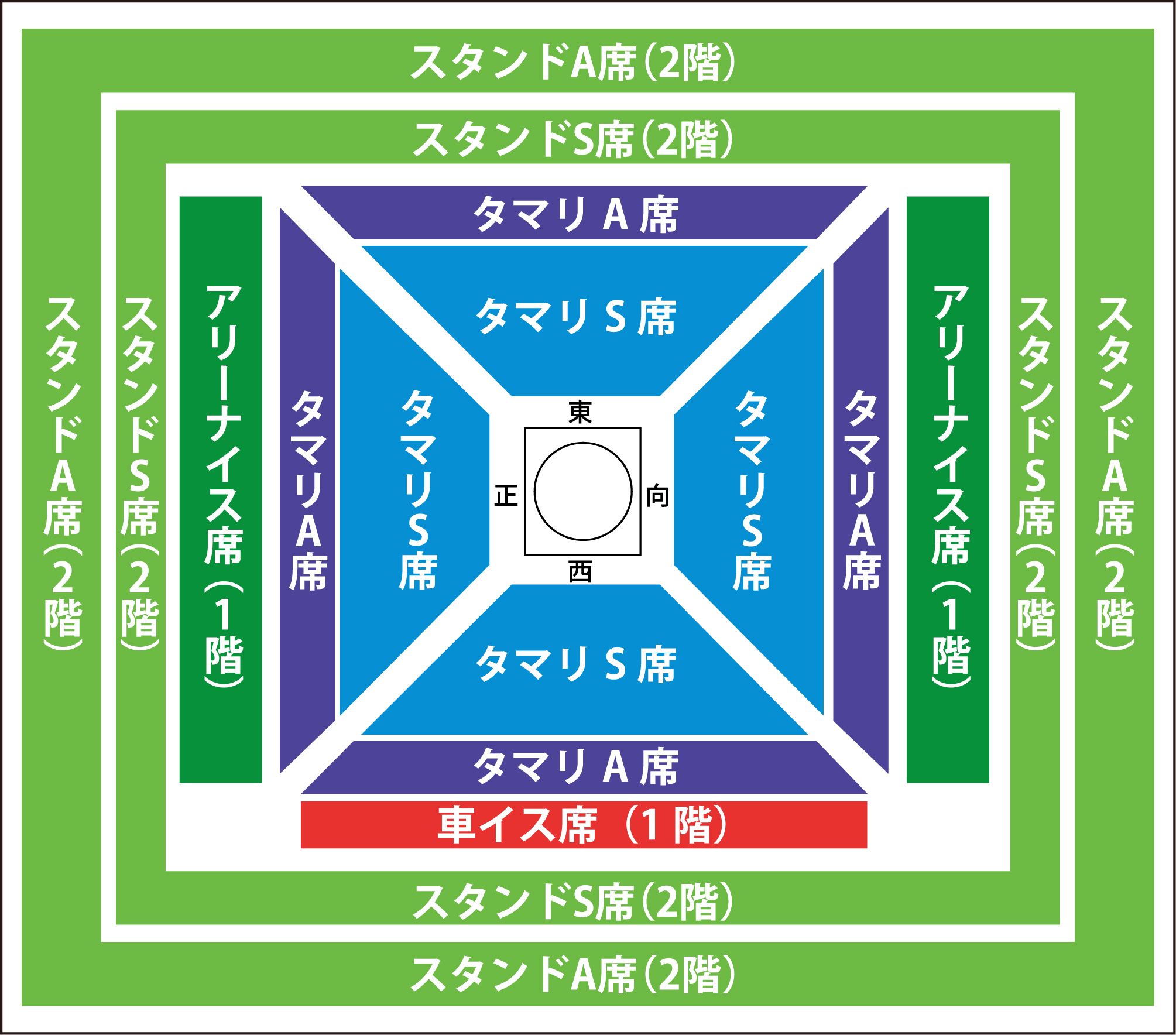 ・車イス席をご希望の方は事務局までお問い合わせください。尚、車イス席以外での車イスでの観戦は原則お断りしております。
